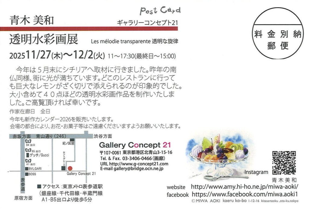 【11/27~12/2】青木 美和 透明水彩画展 / ギャラリーコンセプト21(青山)