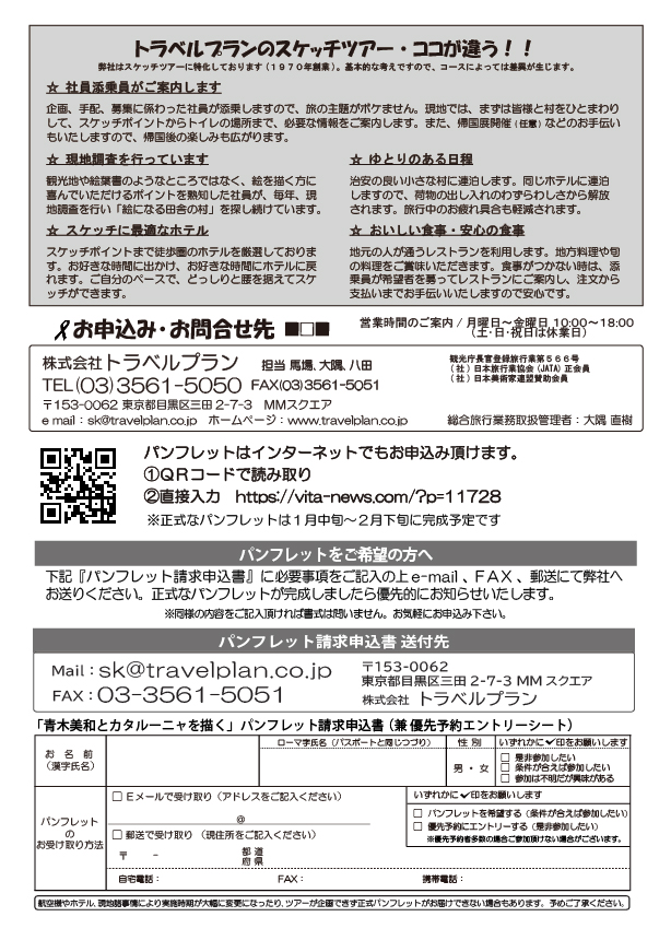 ※パンフレットが完成しましたらお届けいたしますので、希望される方は、「パンフレット請求申込書(兼優先予約エントリーシート)」をご記入の上、メール・FAX・郵送などで弊社までお送りください。