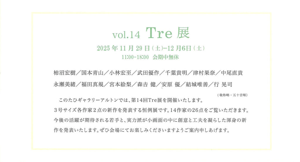 【11/29~12/6】第14回 Tre展 / ギャラリーアルトン(青山)