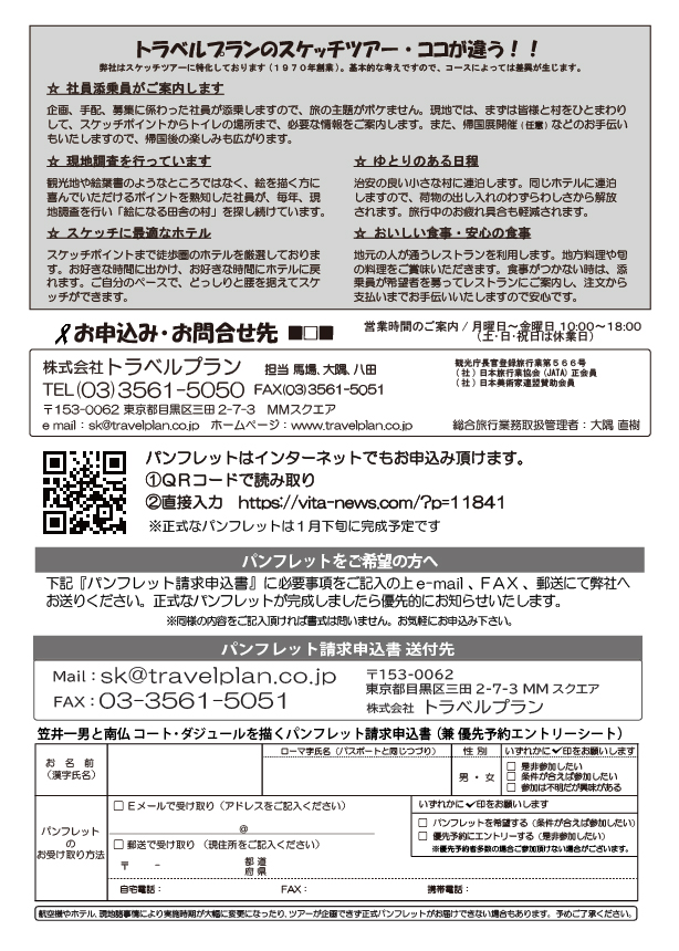 ※パンフレットが完成しましたらお届けいたしますので、希望される方は、「パンフレット請求申込書(兼優先予約エントリーシート)」をご記入の上、メール・FAX・郵送などで弊社までお送りください。