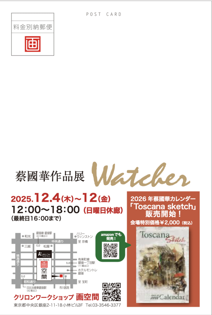 【12/4~12/12】蔡國華 作品展 Watcher / アートスペース画空間(銀座2丁目)
