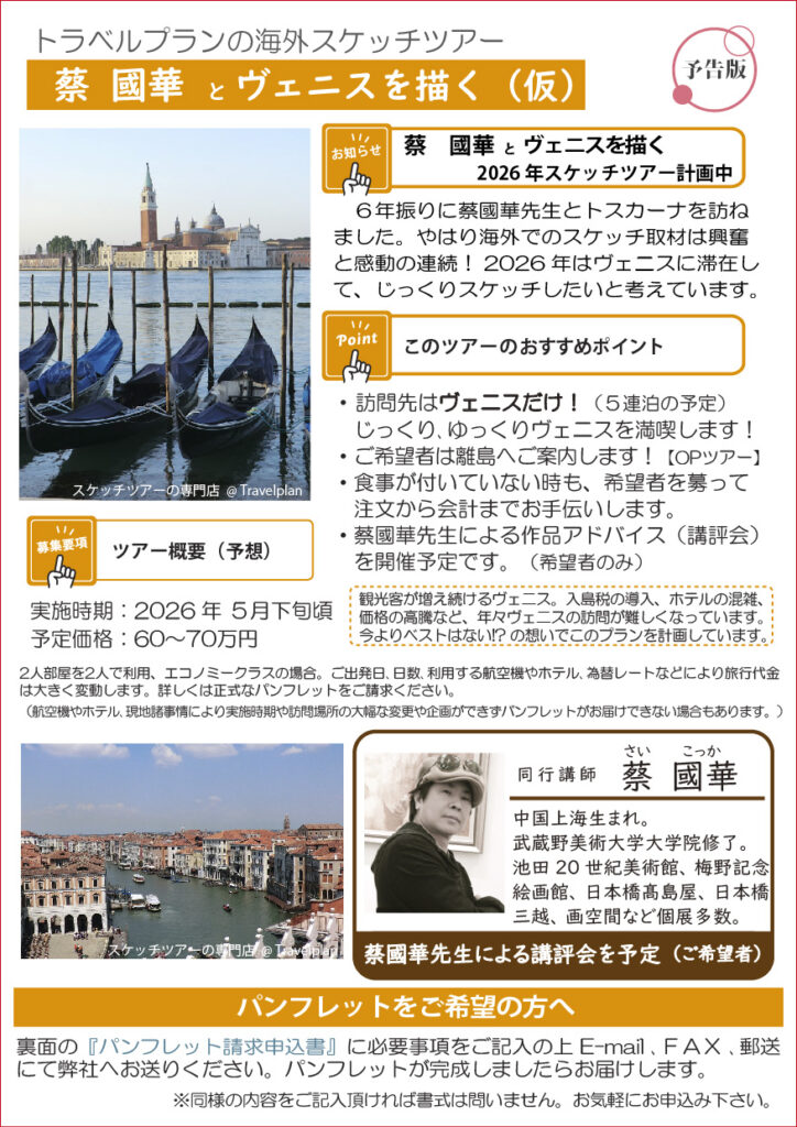 来年もヨーロッパ取材に!という話になり、2026年5月下旬頃に《蔡國華とヴェニスを描く》を計画中です。