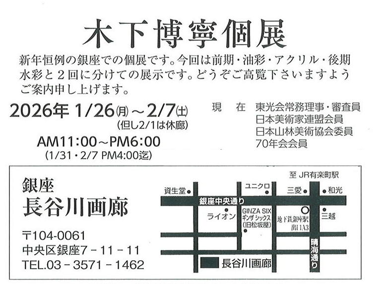 【前期:1/26~1/31 後期:2/2~2/7】木下 博寧 個展 / 長谷川画廊(銀座7丁目)