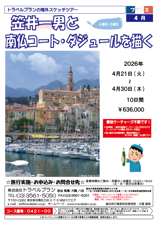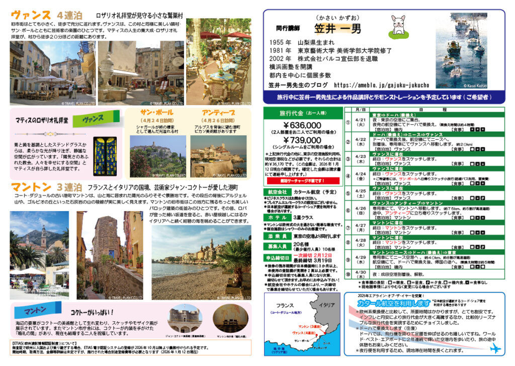 【笠井一男と南仏 コート・ダジュールを描く】募集のお知らせ 2026年4月21日出発 10日間