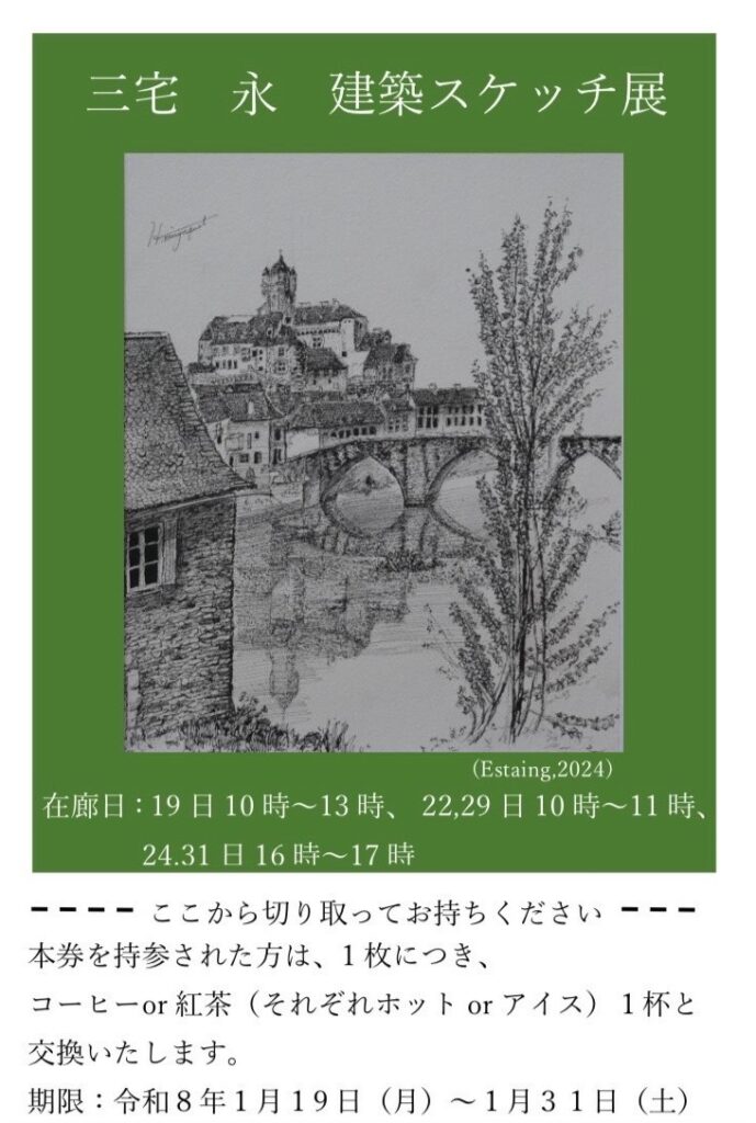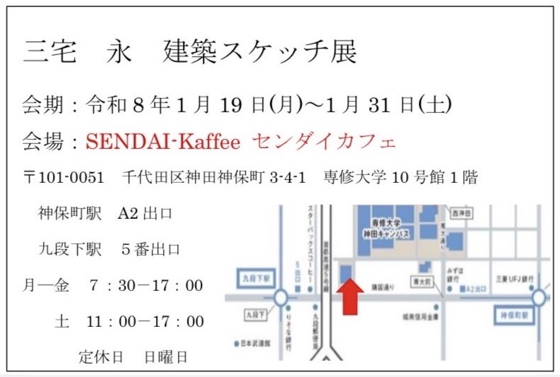 【1/19~1/31】三宅 永 建築スケッチ展 / SENDAI-Kaffee(神田神保町)