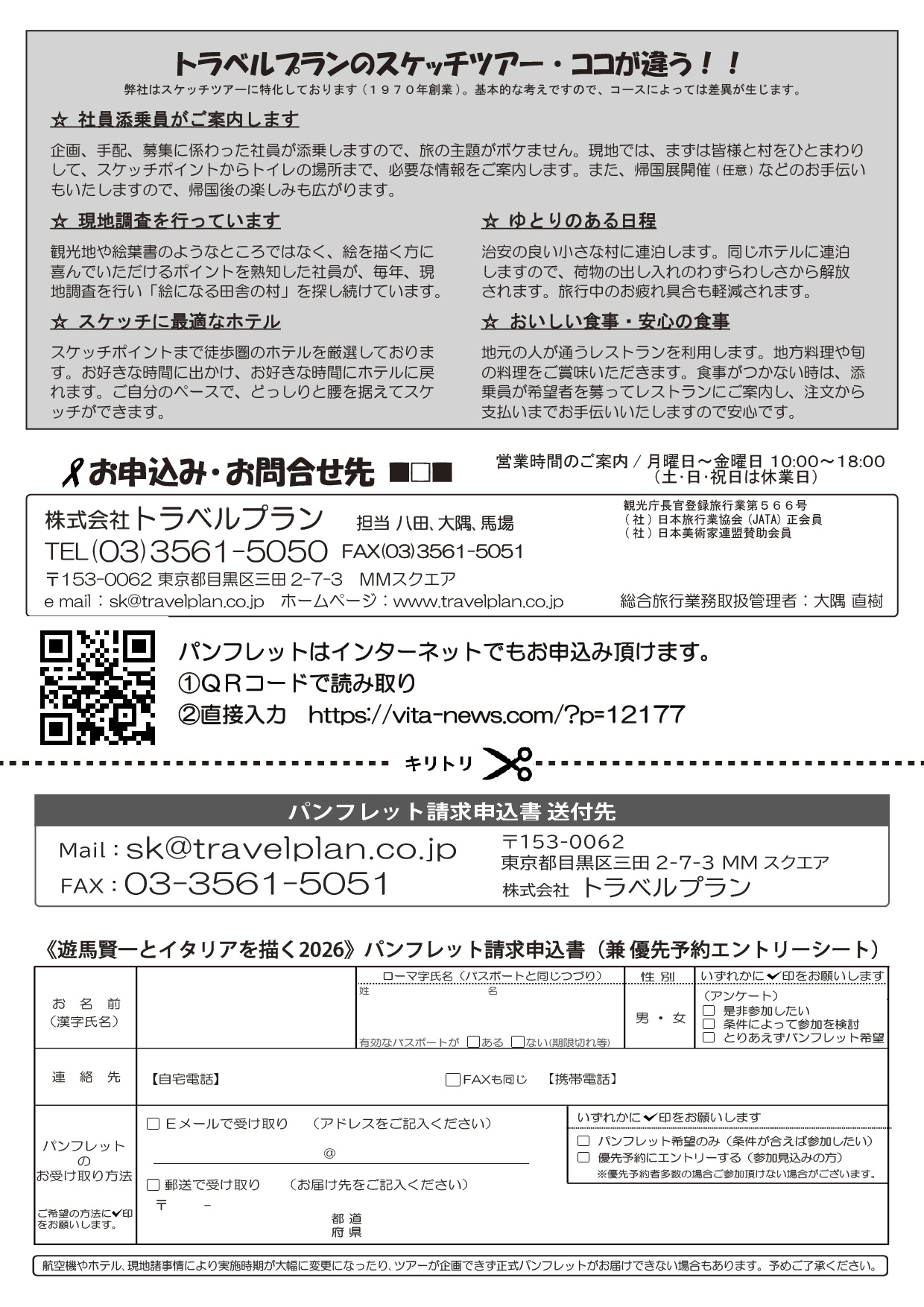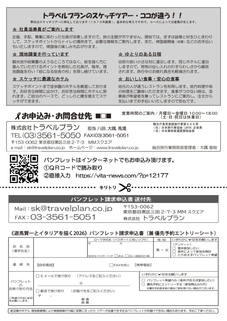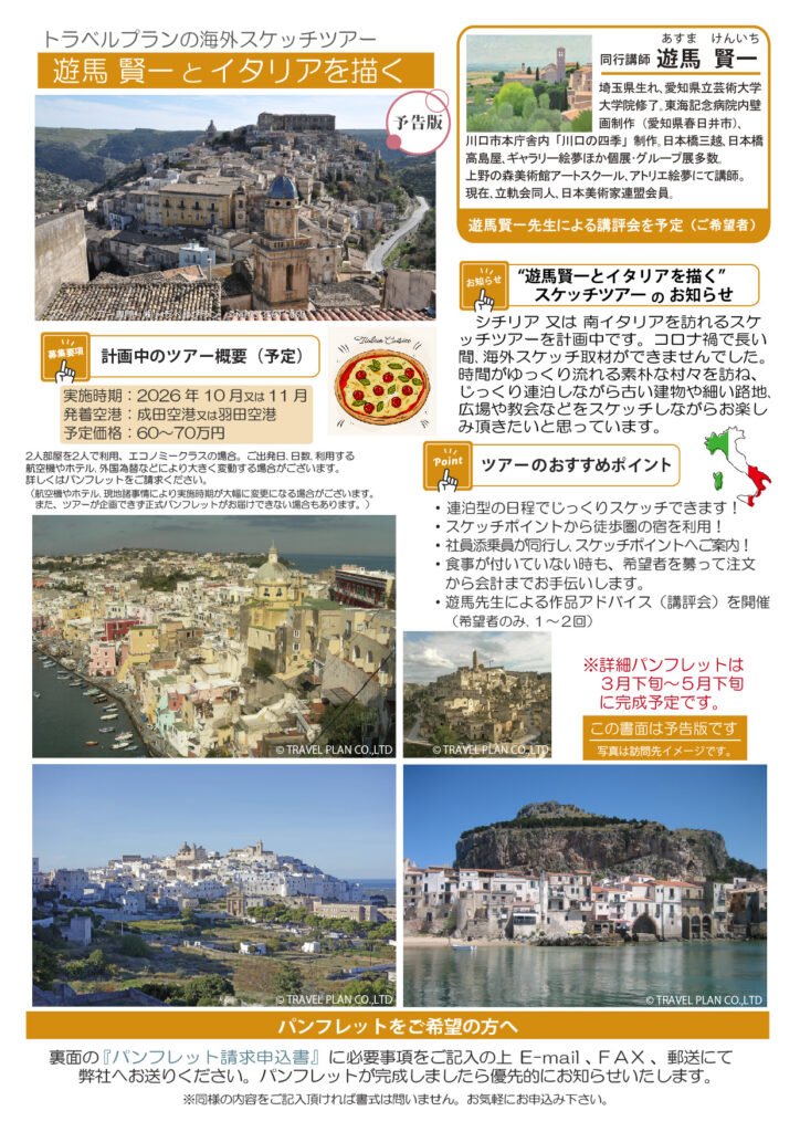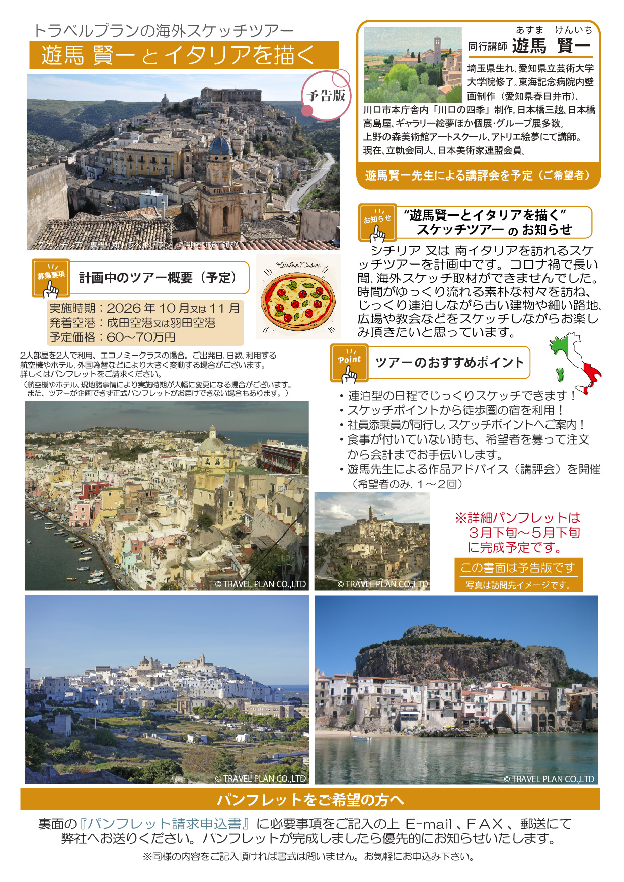 2026年10月又は11月に《遊馬賢一とイタリアを描く》を計画中です。