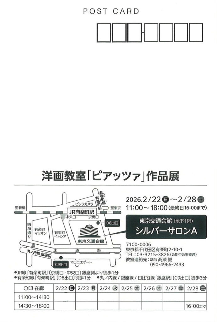 【2/22~2/28】洋画教室 ピアッツァ 作品展 / シルバーサロンA(有楽町)