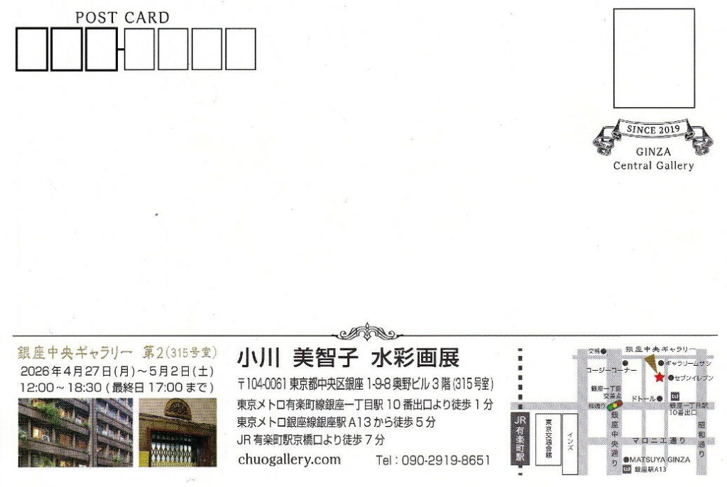 【4/27~5/2】小川 美智子 水彩画展 / 銀座中央ギャラリー第2(銀座1丁目)